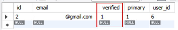 인증을 하지 않은 상태면, verified가 0인데, 인증하고나면 1로 바뀐다.
