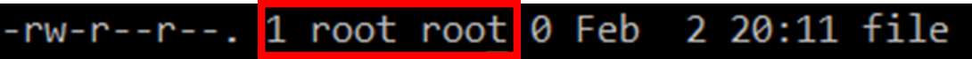 띄어쓰기로 구분된 1, root, root는 각각 소유자, 관리그룹, 나머지이다.