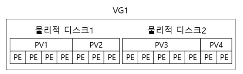 물리적 디스크를 PV(Physical Volume)로 만든다. 그리고 이를 PE(Physical Extent)로 쪼갠다.