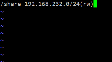 3. 서버) vi 편집기에서 [공유할 경로] [허용할 네트워크 대역 or IP 주소] / [서브넷 마스크] ([옵션]) 을 추가한다.