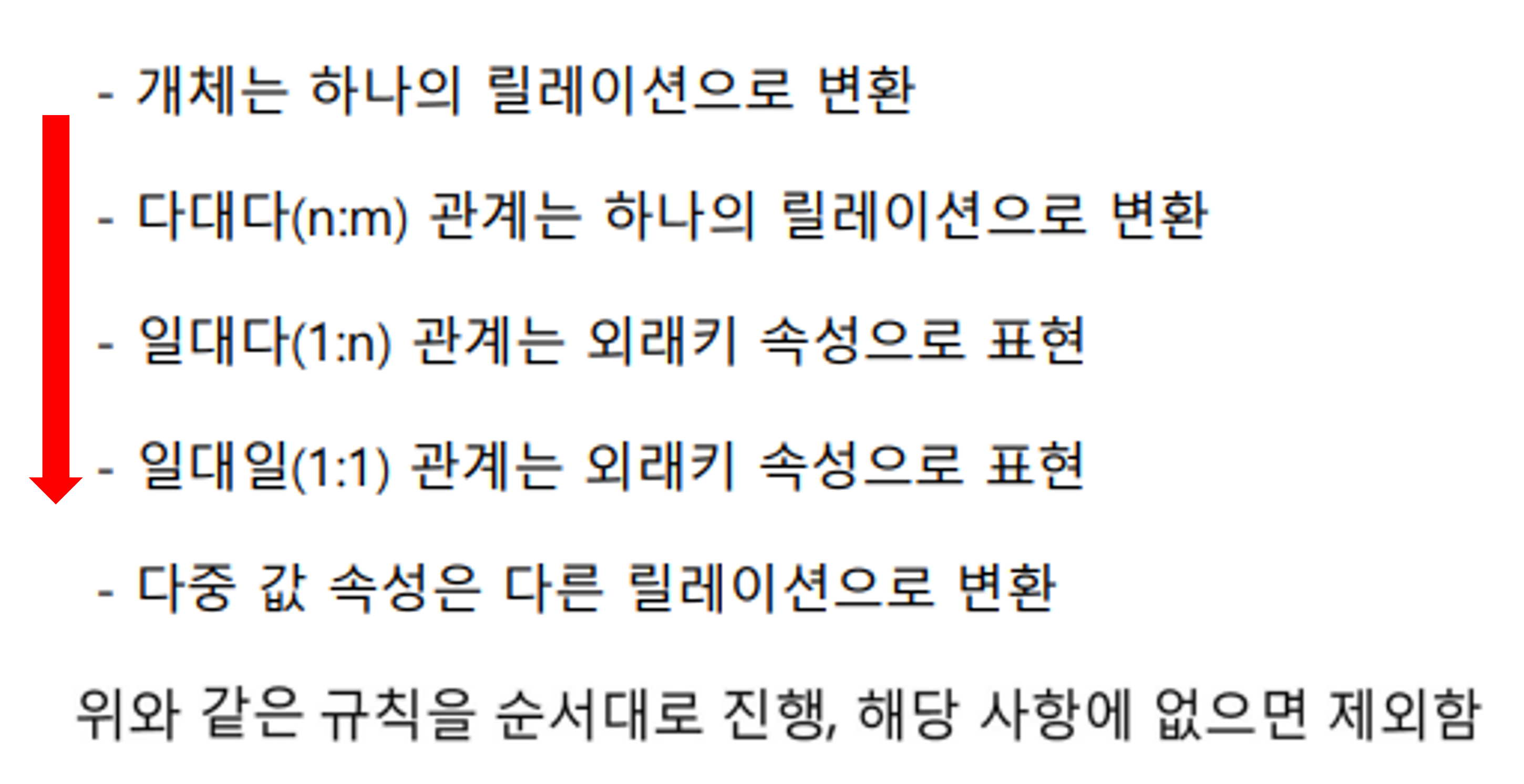 즉, ERD를 릴레이션 형태로 바꾸는 과정을 의미한다.