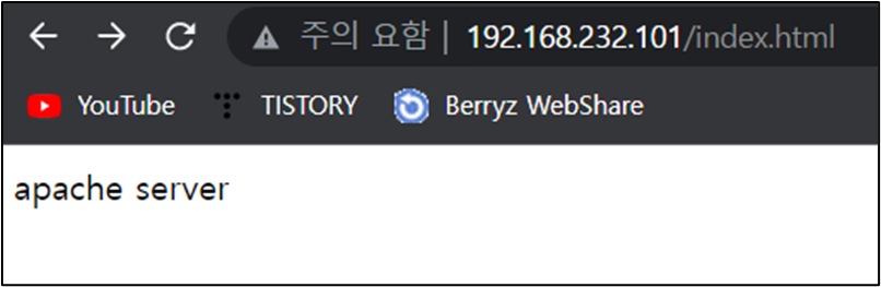 본체 웹 브라우저(클라이언트)에서 http://[아파치 서버 IP]/index.html 입력했을 때