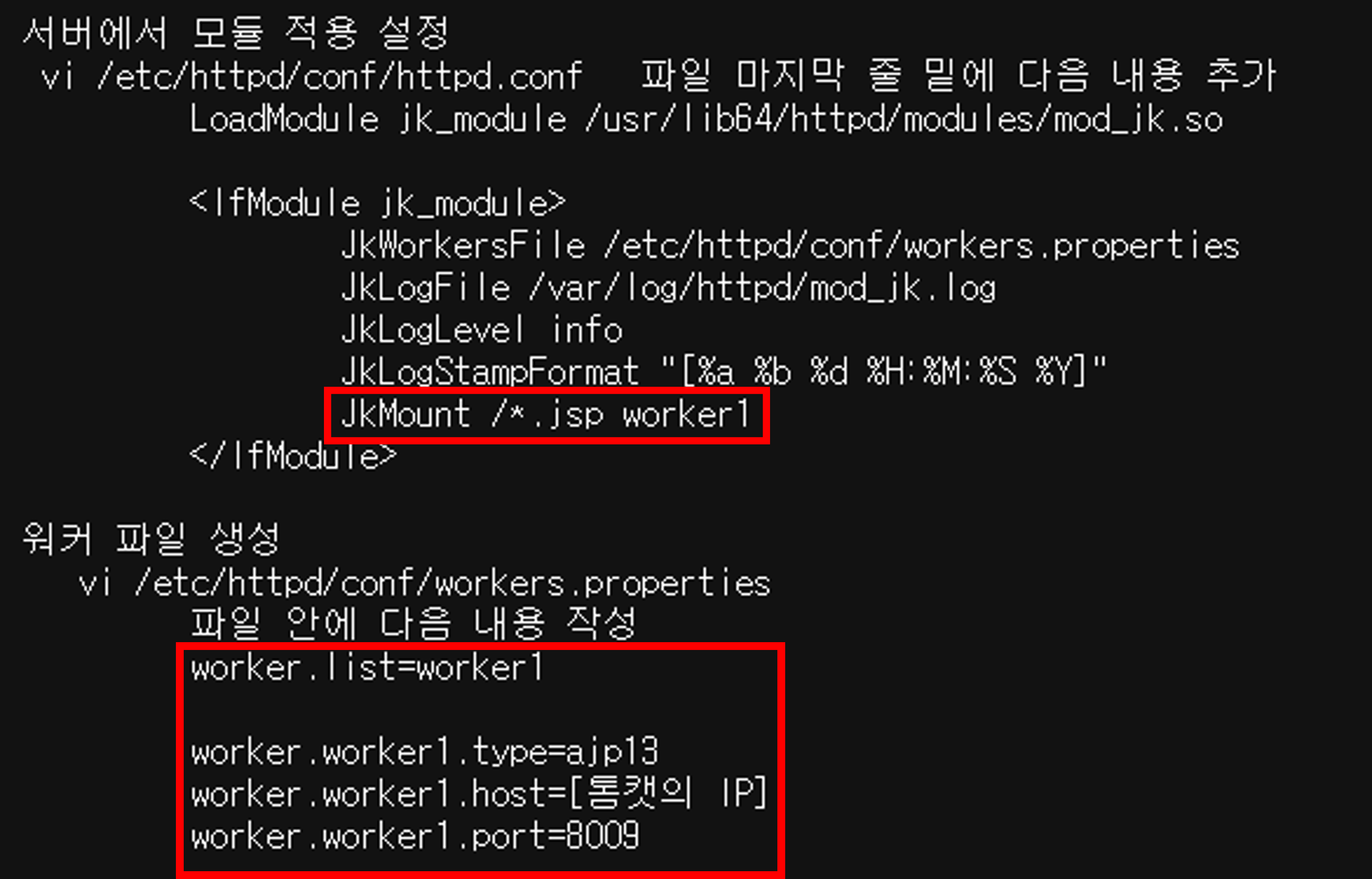 worker file - 아파치가 사용자의 요청을 받았을 때, 본인이 처리할 수 없는 기능을 톰캣한테 시키는 역할