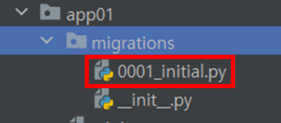 7. 다음과 같이 app01 앱 프로젝트 안에 생성된 것을 볼 수 있다.