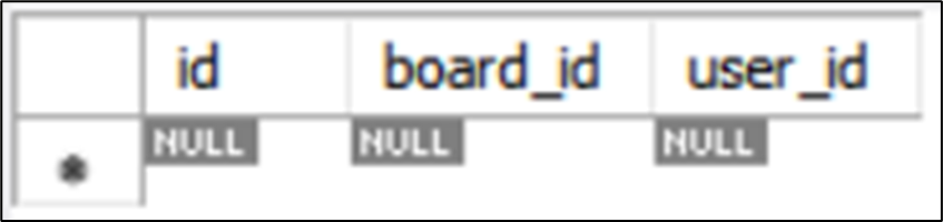 따로 테이블이 생성되고, 속성은 board_id, user_id가 있다.