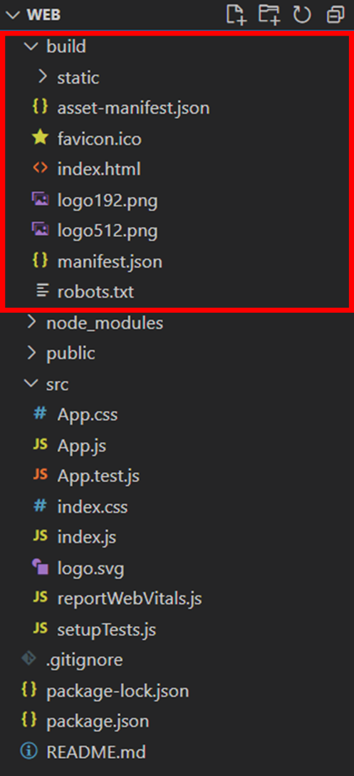 react 코드) visual code - react 코드 작성하는 부분의 터미널에 아래의 코드를 입력하여 build를 한다.