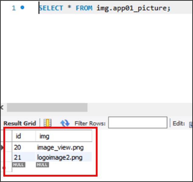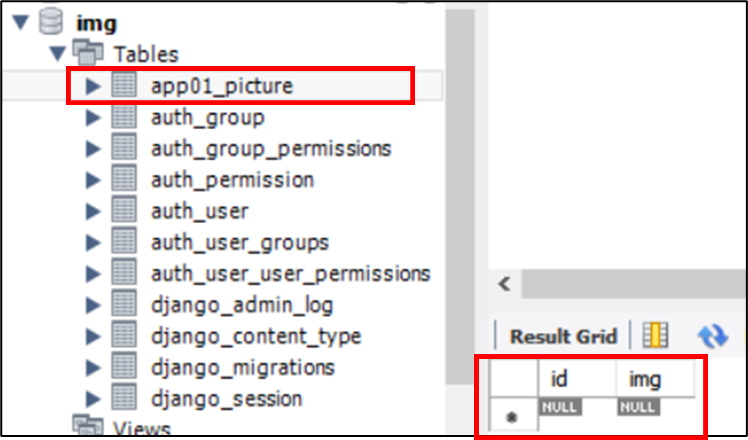확인) mySQL workbench에 들어가서 확인해보니, picture이라는 테이블이 생성된 것을 확인할 수 있었다.